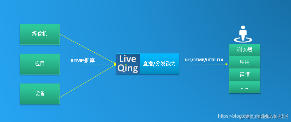 LiveQing流媒体中的云端直播模块提供了这样的功能。直播源可以来自于多种,比如摄像机、PC、应用等。