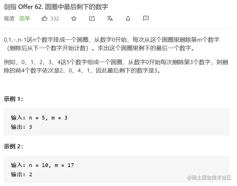 - 关键点在于明确什么是约瑟夫环,以及删除第m个元素的下标是多少。
