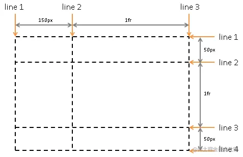 栅格布局中的一切都依赖于栅格线,栅格线的布局方式非常多,最基本的栅格模板是由 grid-template-rows 和 grid-template-columns 这两个属性确定的。