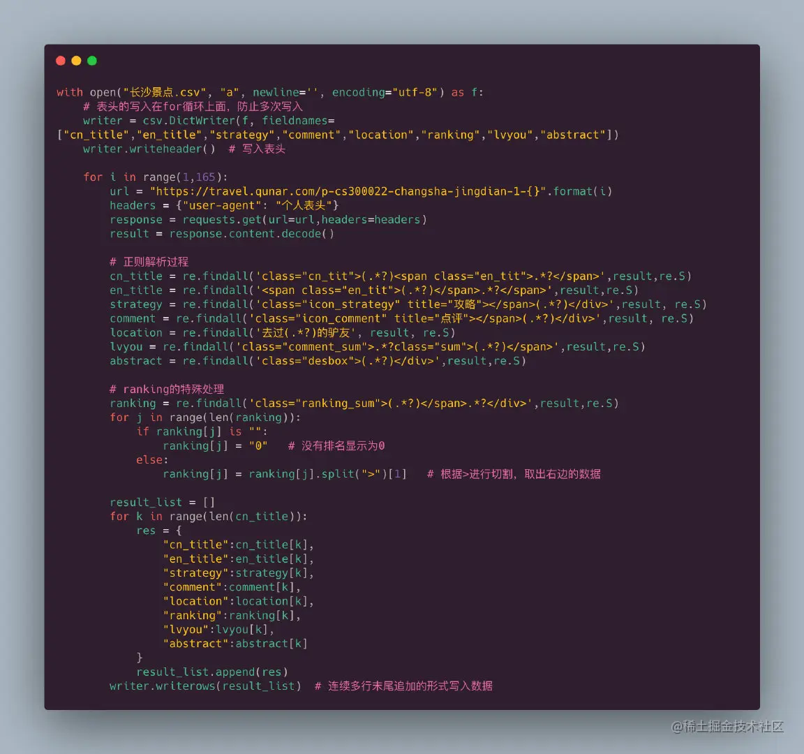 长沙景点的数据获取方法和之前那篇关于厦门的文章是一样的,只是重新跑了一遍代码,具体过程不再阐述,感兴趣的朋友可以看之前的文章,爬取的字段: