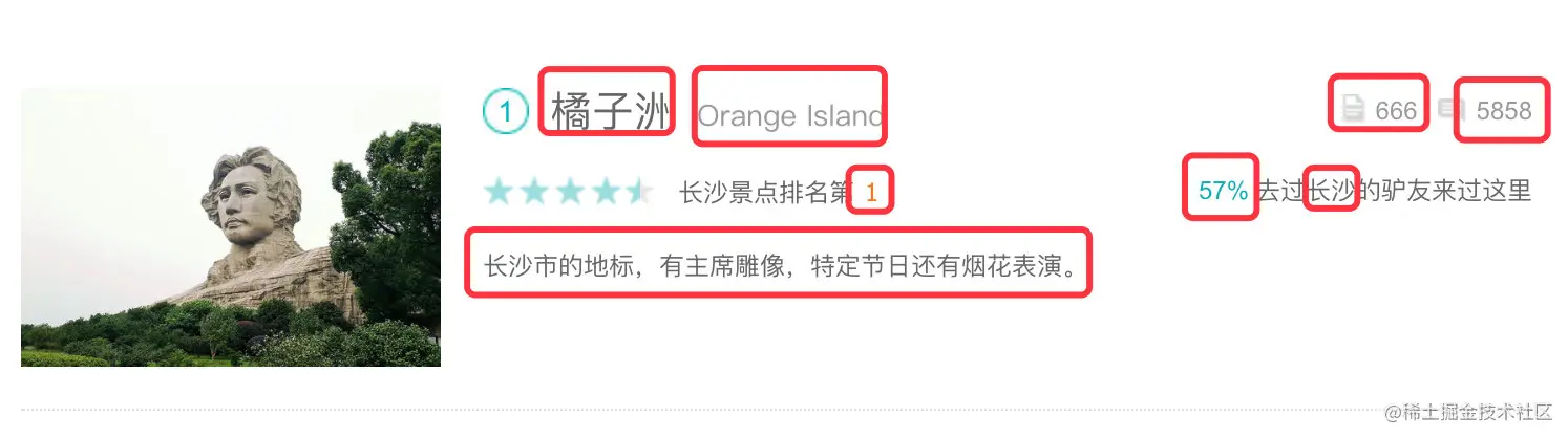 很显然:橘子洲、岳麓山、岳麓书院、太平老街排名靠前