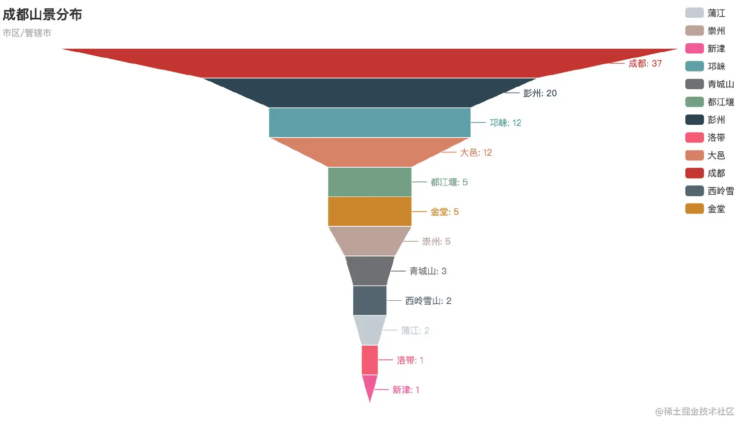 果然大部分的景区还是在成都市区,另外都江堰也是成都的人们旅游景点分布点。