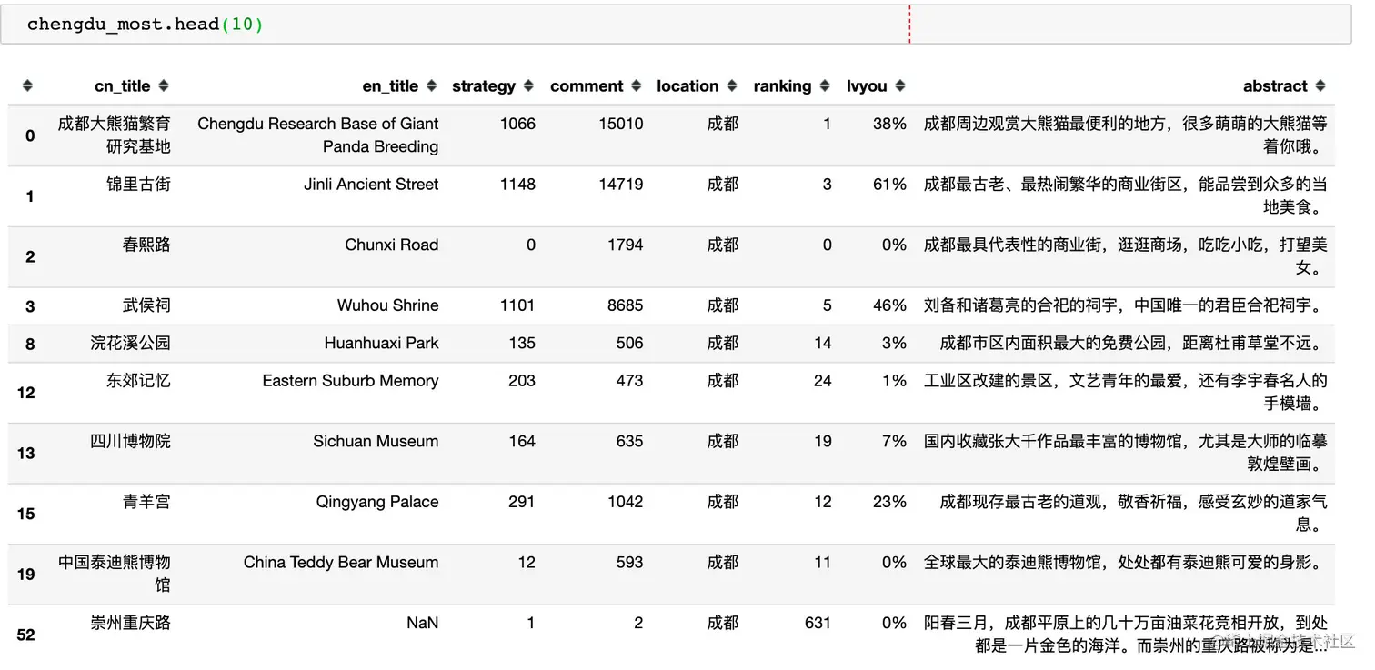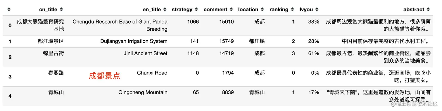 数据中主要包含的是成都市区及管辖分区域的景点。
