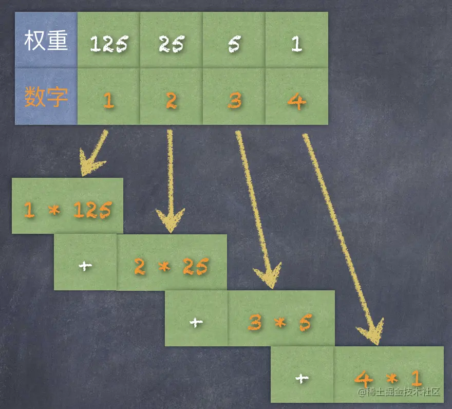 从右数第四个位数上的数字代表多少个 125;