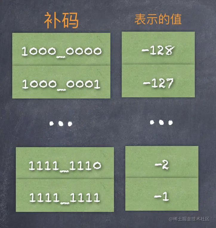 现在 一个 8 位的二进制就可以表示的范围是:-128 ~ 127,并且中间没有任何重复、遗漏的数字。