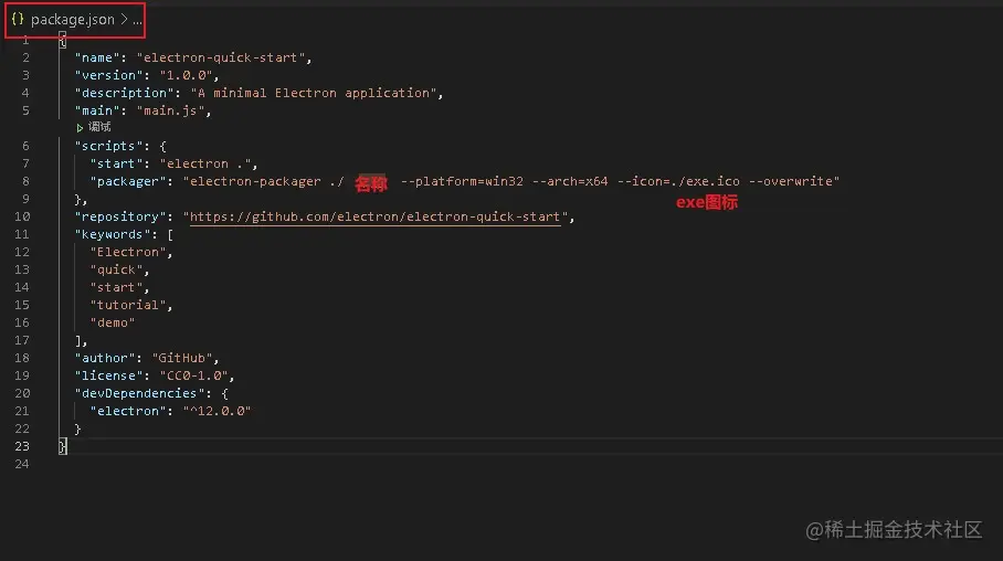 2.在package.json中设置 packager项
