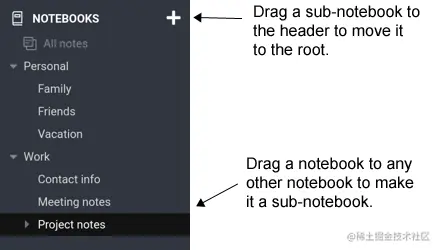 多层笔记。多层笔记可以将多个笔记组织成一棵树。