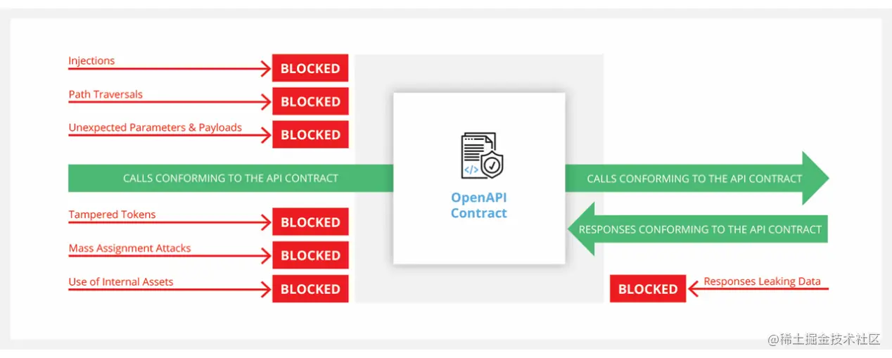为了解决这个问题,公司越来越多地转向积极安全 模式。他们定义了预期的API行为,确保定义足够严格和详细,以使其有意义,测试实现以符合该定义,然后在使用API期间强制执行该定义。API预期范围之外的任何调用以及API预期返回范围之外的任何响应都将被自动拒绝。