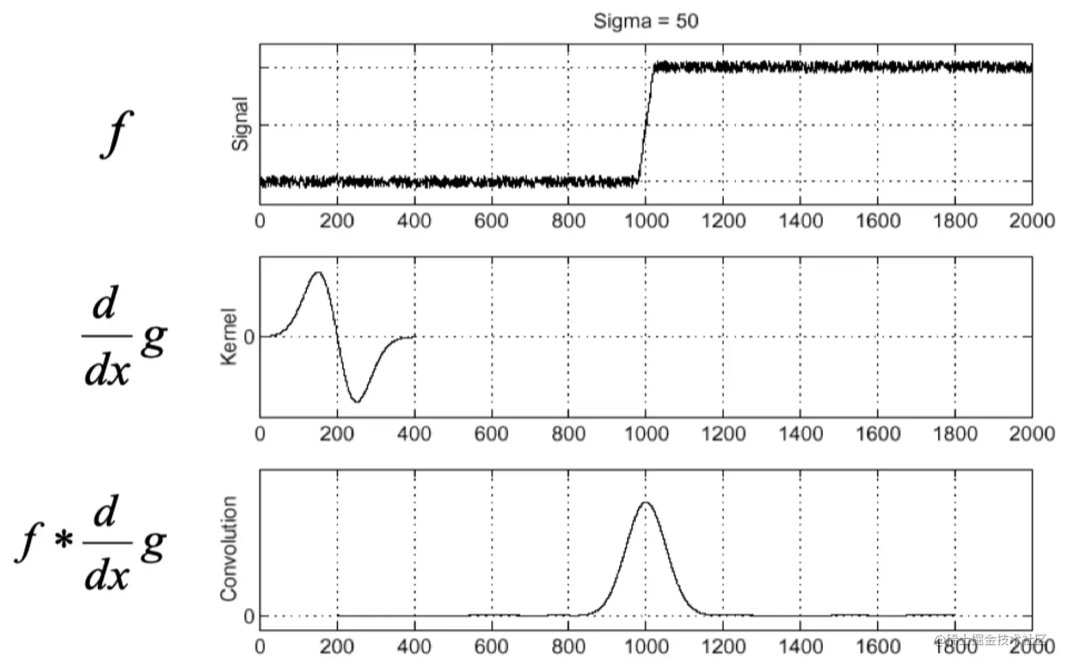 经过高斯平滑后,上图中带噪声的函数即可得到“干净”的梯度函数: