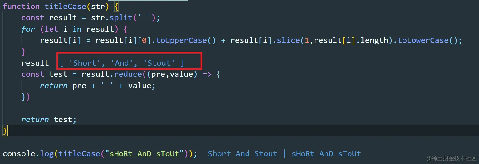 console.log(titleCase("sHoRt AnD sToUt"));