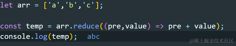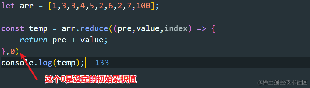 JS中reduce方法 Always_positive 2021-04-08 71 阅读1分钟 reduce方法可以用来求一个数组的累计和 pre代表前面所有的加一起的累积值 0代表的是默认的pre值 index代表的是下标 reduce方法将数组中的元素连接成一个长的字符串