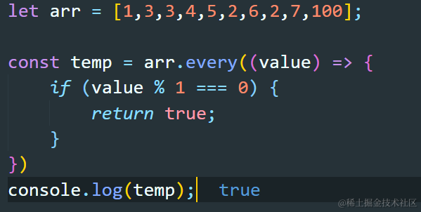 JS中every()方法 Always_positive 2021-04-08 264 阅读1分钟 every()方法的返回值是一个布尔类型的值 every()方法接收的是一个回调函数 every()方法存在的意义是什么? 检验数组中的每个元素是否符合要求,只要都符合,返回true