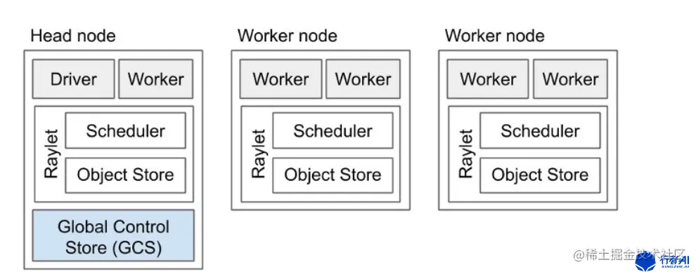 Ray的启动由两个步骤组成:启动头节点、注册工作节点到头节点。
