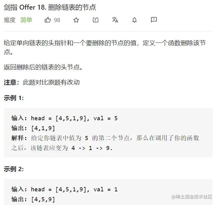 - 本题核心思路在于复制目标节点的值,然后指针跳过该节点。
