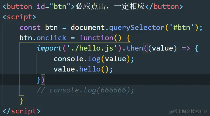 ES6—56:动态import Always_positive 2021-04-08 176 阅读1分钟 注意事项 别忘了加export 通过querySelector()获取id的时候,别忘了加# 动态import返回的是一个promise对象