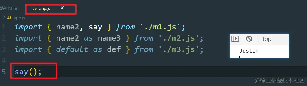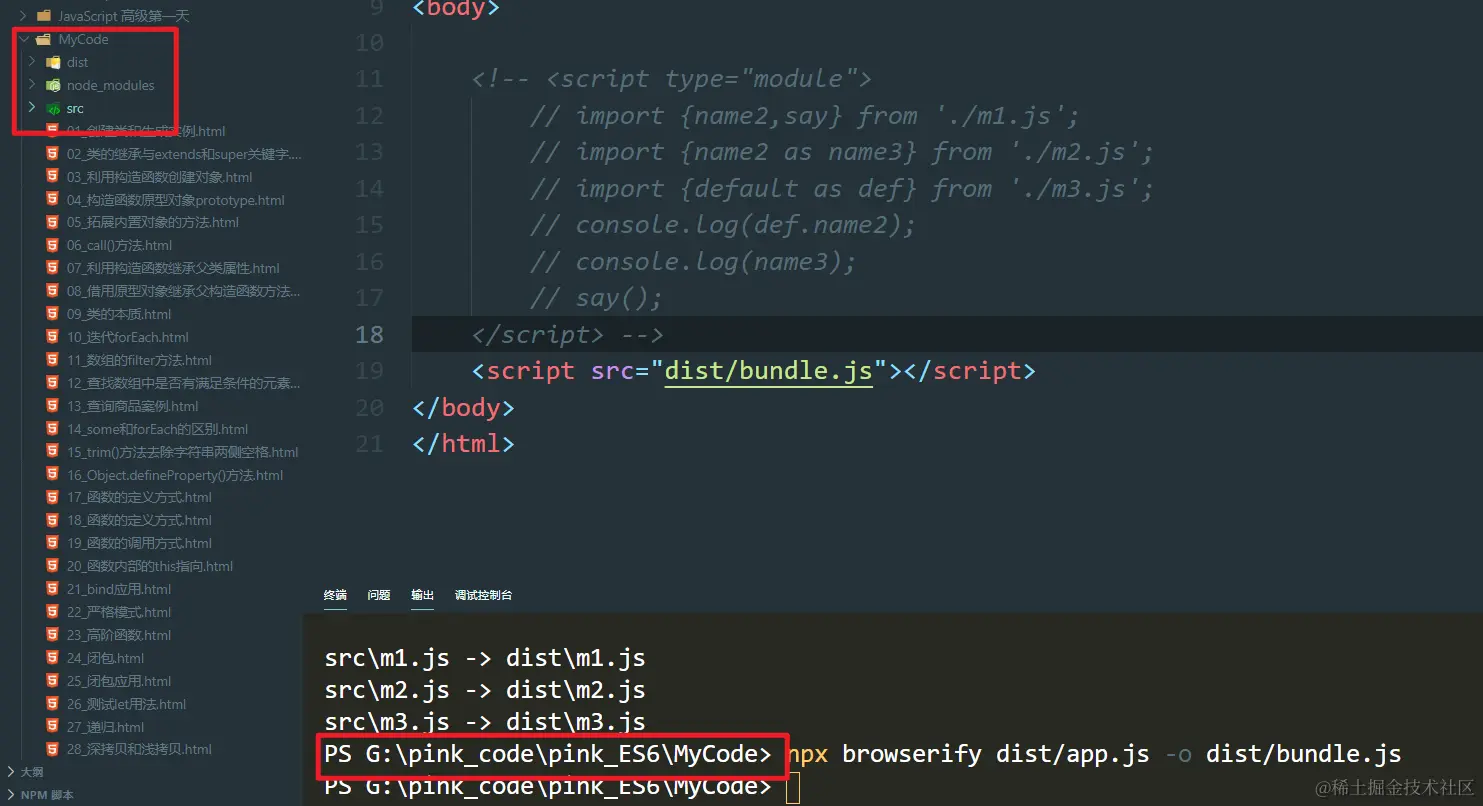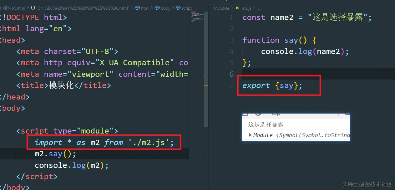 ES6—49:模块化 Always_positive 2021-04-08 56 阅读1分钟 导入模块(分别暴露) 导入模块(选择暴露) 导入模块(默认暴露) 这里为什么要加this,因为不加this访问的是全局作用域下的name2所以会报错,加了访问的是对象内部的name2所以不会报错。 解构赋值形式导入 通过入口文件引入 使用Babel对模块化代码进行转换 (注意在哪个路径运行的)