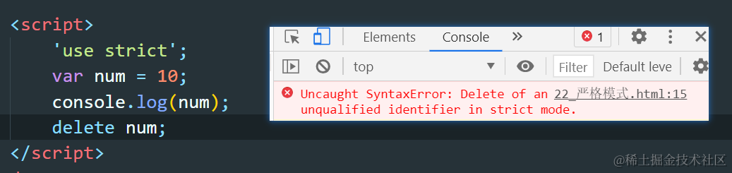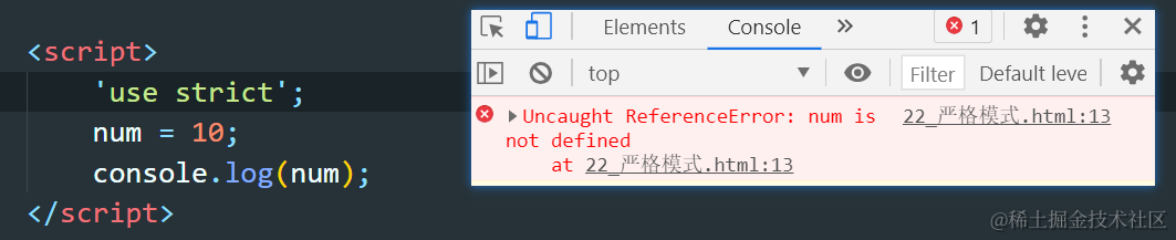 ES6—28:严格模式 Always_positive 2021-04-08 60 阅读1分钟 什么是严格模式? 如何开启严格模式? 脚本开启严格模式 函数开启严格模式 严格模式下哪些不能用? 未定义变量,不能直接赋值。(非严格模式下可以) 不能在严格模式下随意删除已经定义好的变量 在严格模式下,全局函数中的this指向的不再是window,而是undefined 严格模式下,函数参数不允许重名。