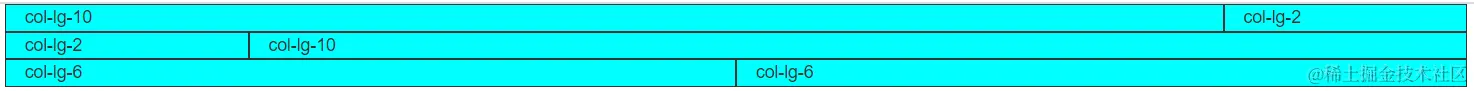 当屏幕处于sm的状态时,第一个占6列,第二个占6列,第二个之所以占6列,是因为第二个col-xs-6向上兼容。