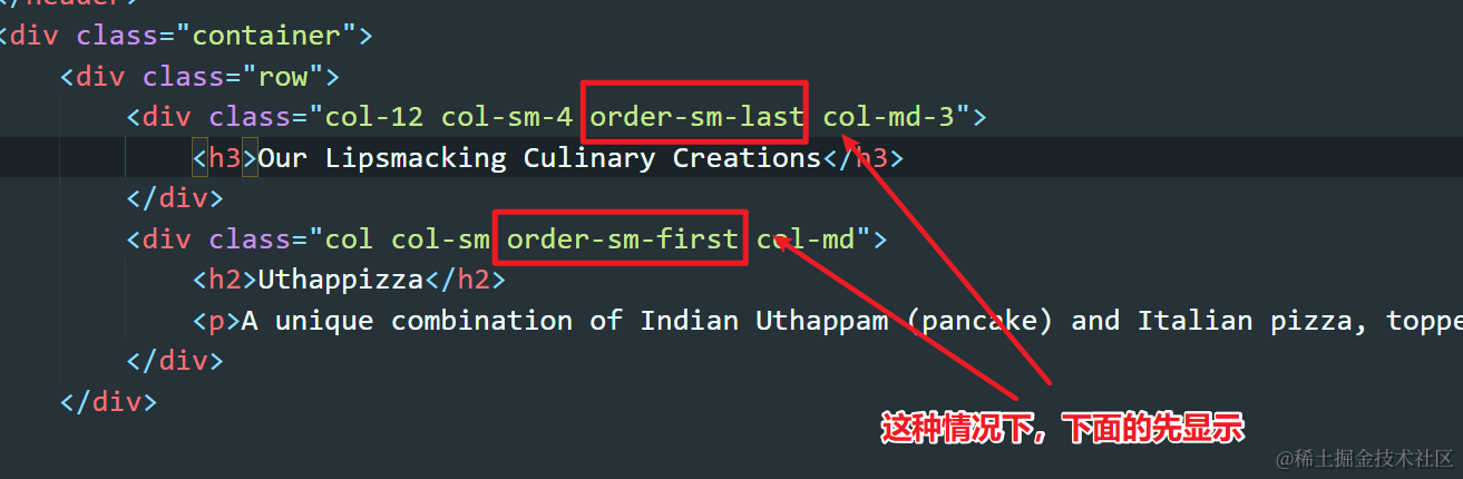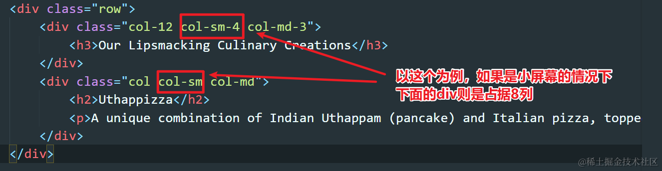 准确理解BootStrap中Grid中的列分布 Always_positive 2021-04-08 134 阅读1分钟 col-12(表示极小屏幕的情况下占据12列即整行) 因为Bootstrap中默认的是一行12列。 col-sm-4(表示小屏幕的情况下占据4列) col-md-3(表示中等屏幕的情况下占据3列) 不指定数字的情况下,是剩下多少自动填充 改变原有左右布局的方式 假如只要11列,可以向右推一列