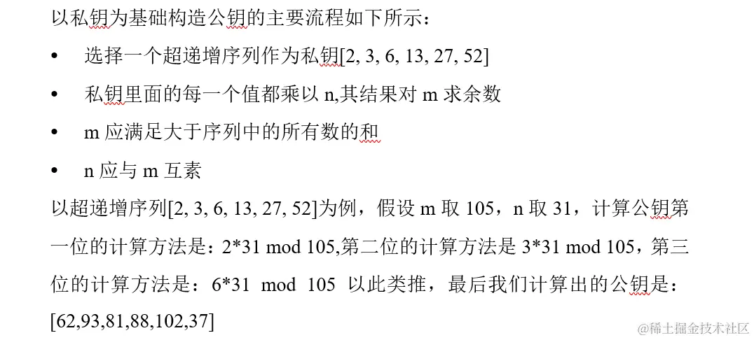 提到背包密码体制,我们首先就想到为什么这个密码体制和背包有什么关系,背包二字的由来是因为在1978年Merkle与Hellman提出的MH背包问题,这个问题的总体思路是这样的,现在有许多不同重量的物体,从中可以任意选择n件物品放入背包。披露背包中物品的总重量和物品堆;但是所选项目的类型不是公开的。针对这种问题Merkle与Hellman合作设计了一种使用背包问题对信息进行加密的方法,因为该加密算法涉及到背包问题,所以背包密码因此得名。