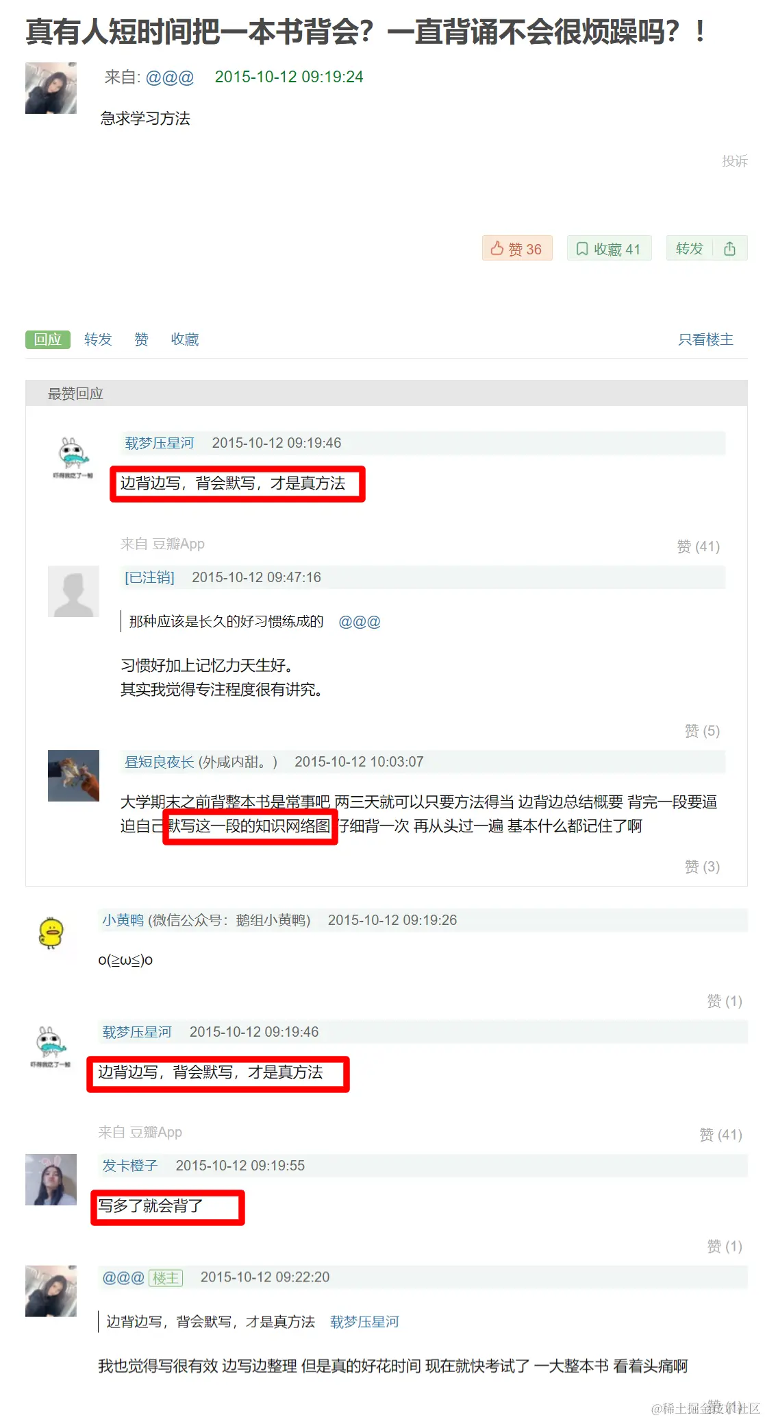 快速背诵的心得体会 Always_positive 2021-04-08 179 阅读1分钟 背诵心得 近期临近期末考试,很多考试科目需要背诵,刚开始很是抵触,但是只要勇于迈出第一步就好,在背诵的时候,感觉越是笨的方法越是有效,我发现背书有一个好办法: 边看边写 边写边背 边背边默 默写三遍 上面的方法,我也找到了一些网友的论证: