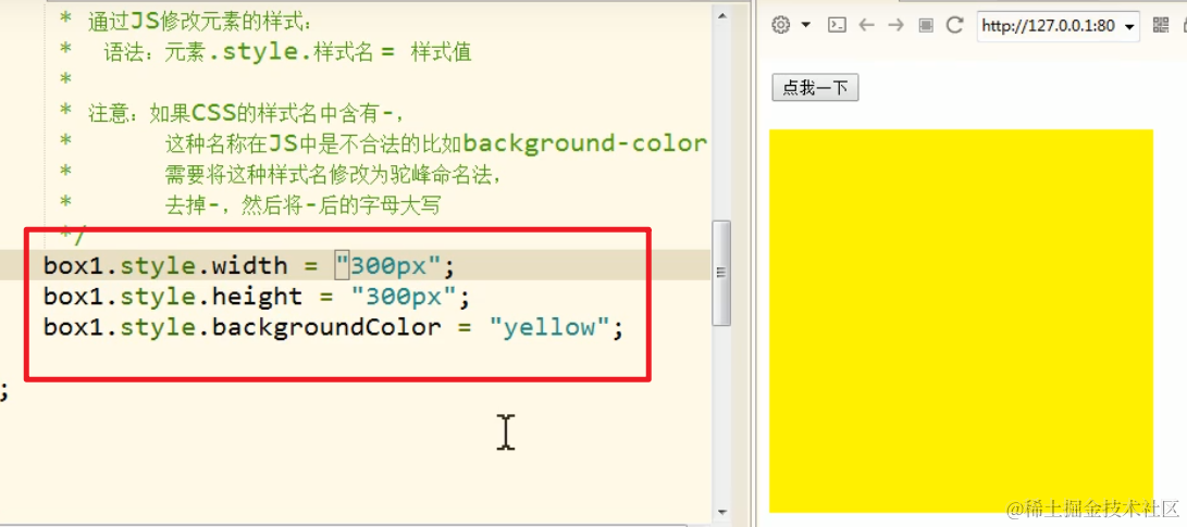 元素.style.样式名 = 样式值