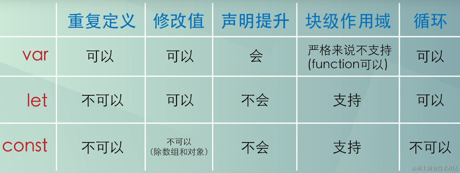 - var 严格来说不可以,但是function可以