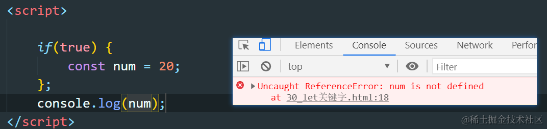 - 使用let关键字声明的变量具有块级作用域