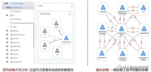 基于生成的可视化架构,通过经典设计理念符合度分析,可以帮架构师、开发人员发现一些设计坏味道,比如是否存在循环依赖、跨层依赖、反向依赖等。为重构活动提供参考,提高重构效率。