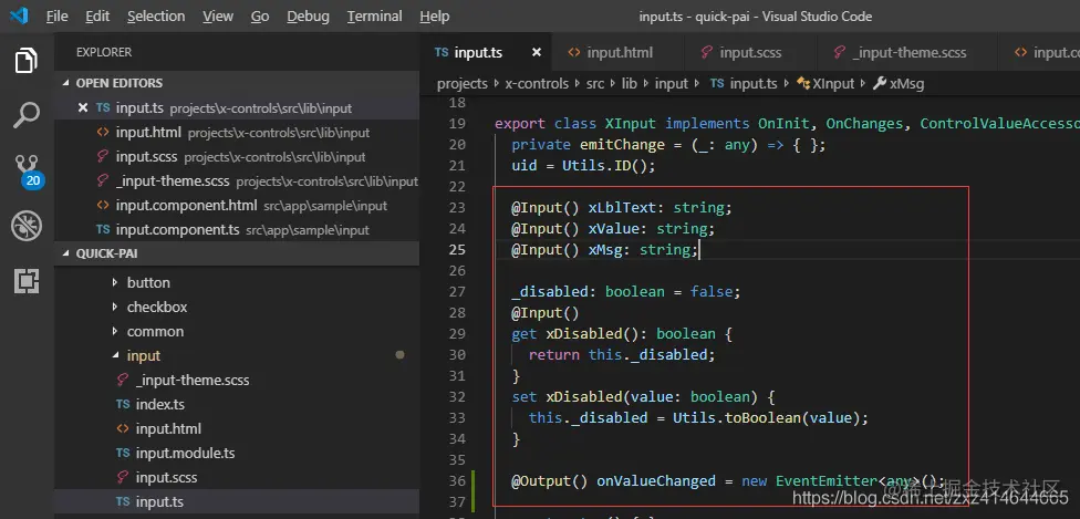 2. 定义input组件的输入输出: