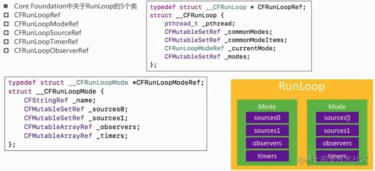 这个mode就是CFRunLoopModeRef类型,所以里面存储一堆的CFRunLoopModeRef类型的mode.