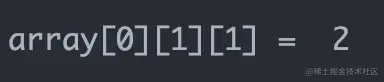 如果我们要拿到下图的 2,访问方式为:array[0][1][1]