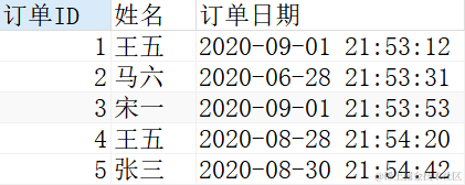 我们想知道每个订单ID都是哪些客户订购的,以及具体的订单时间。我们运行下面的 SQL 语句(包含 INNER JOIN):