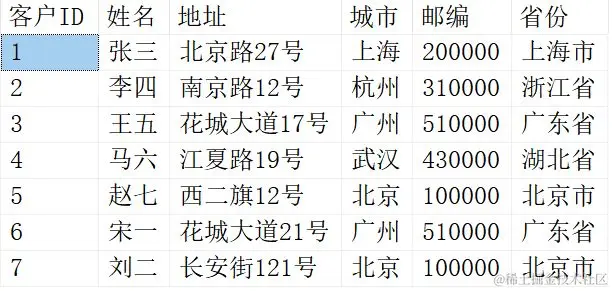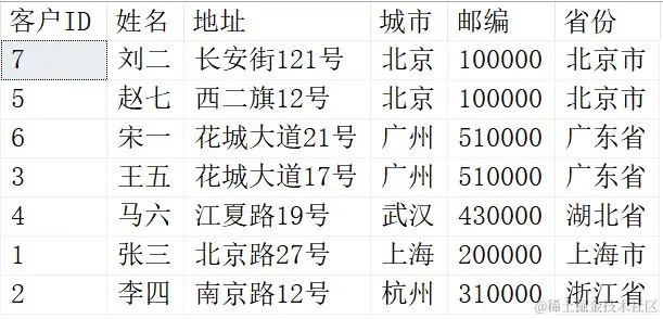 ( 7, '刘二', '长安街121号', '北京', '100000', '北京市' );