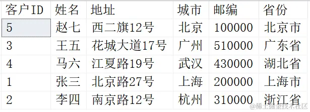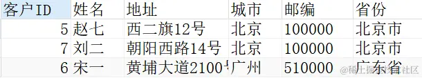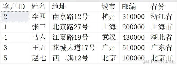 使用LIMIT后,我们可以找出排好序后的前几名,例如找出对省份进行升序排列后的前三名客户信息: