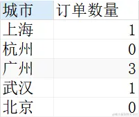 因为没有北京和杭州的用户购买产品,所以订单数量为0