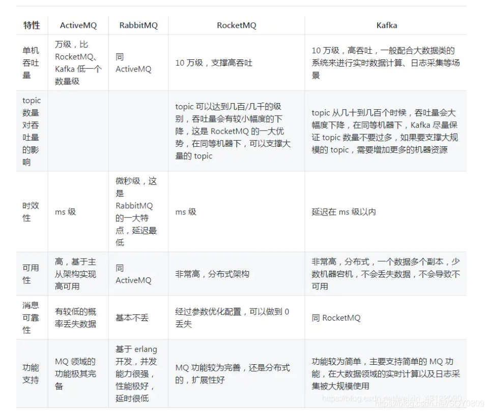 6. Kafka、ActiveMQ、RabbitMQ、RocketMQ 有什么优缺点?