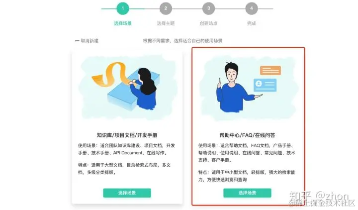 注册Baklib账号登陆,开始创建站点,选择创建的场景,这里选择帮助中心/FAQ/在线问答制作