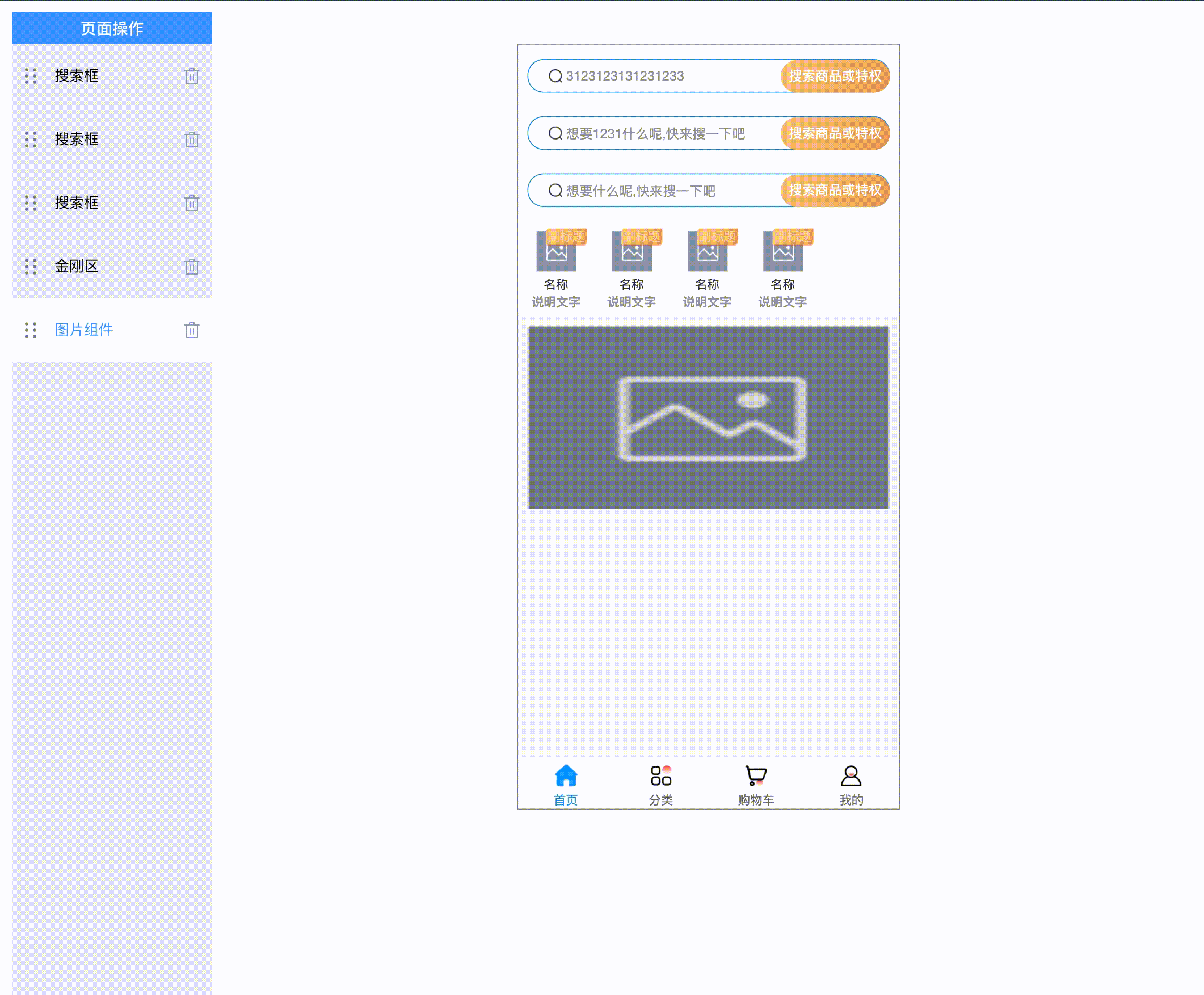 那么这里对应的就是图片组件 图片组件(优惠券也是图片样式) 商品组件 商品组件
