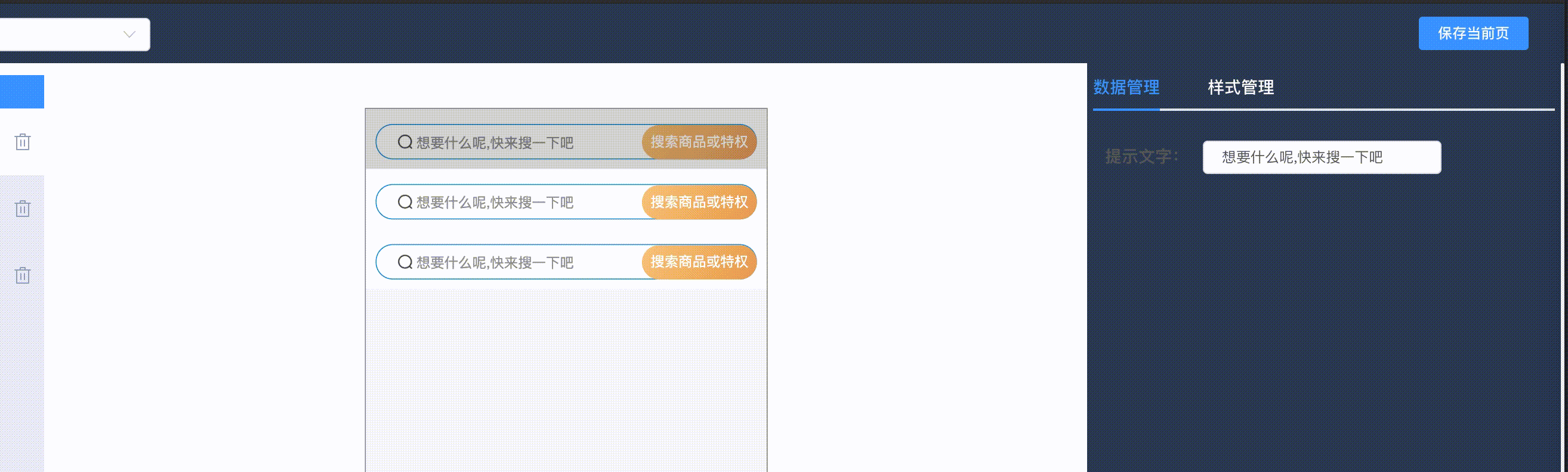 // 后台点击右侧装修组件,例如点击 搜索框