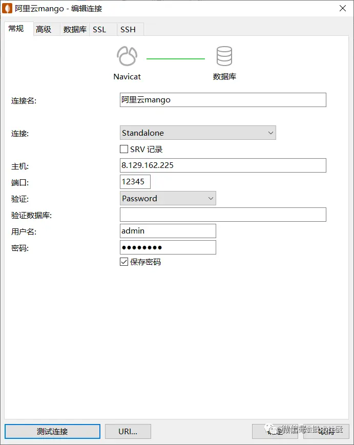 4、通过navicat工具(非开源)连接mongodb数据库