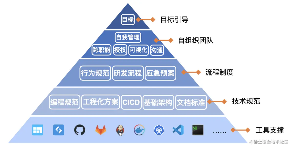 1、研发的基础离不开工具的支撑,通过工具可以最大化的释放员工的双手,这对于效能的提升是非常明显的,比如通过DevOps工具链搭建CI/CD,它不仅加速了部署过程,更是提供了另一种研发场景的可能性。当然工具绝不是一成不变的,它们会根据企业的实际发展不断的向前演进,带来新一代的效能革命。