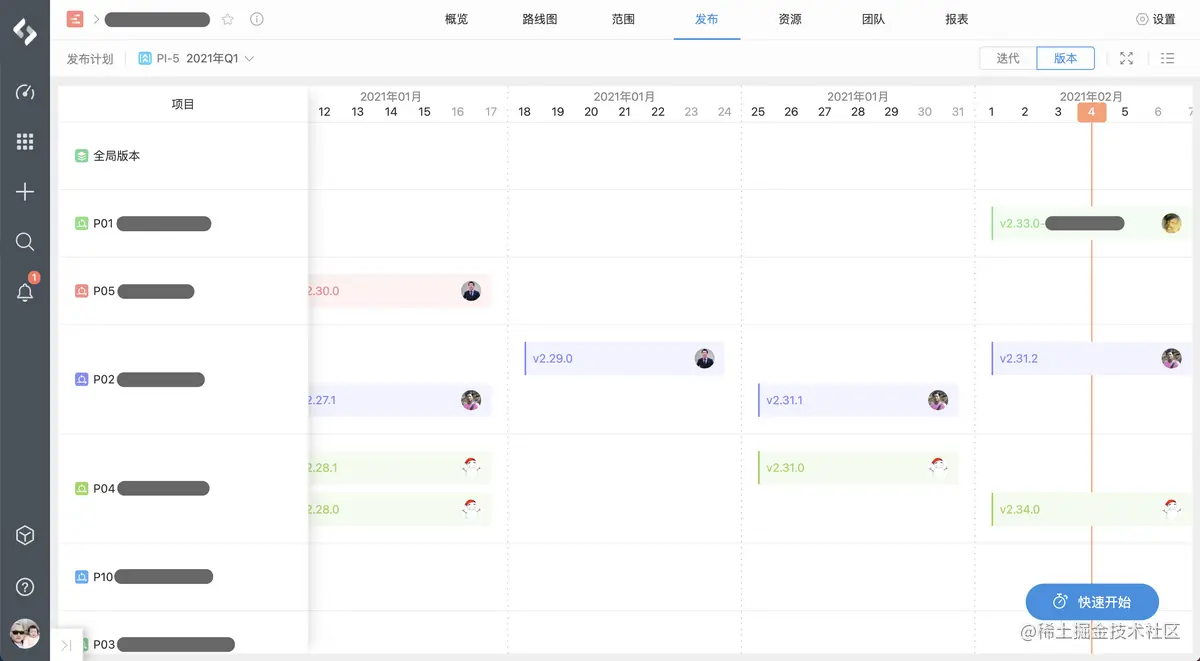 **目标确定后,一些关键工作项要有明确的落地计划,这就需要通过PingCode Plan来进行规划。**在PingCode Plan中通过路线图可以清晰看到所有工作的时间节点,这个阶段对应着”规模化敏捷“图中的”特性“节点。