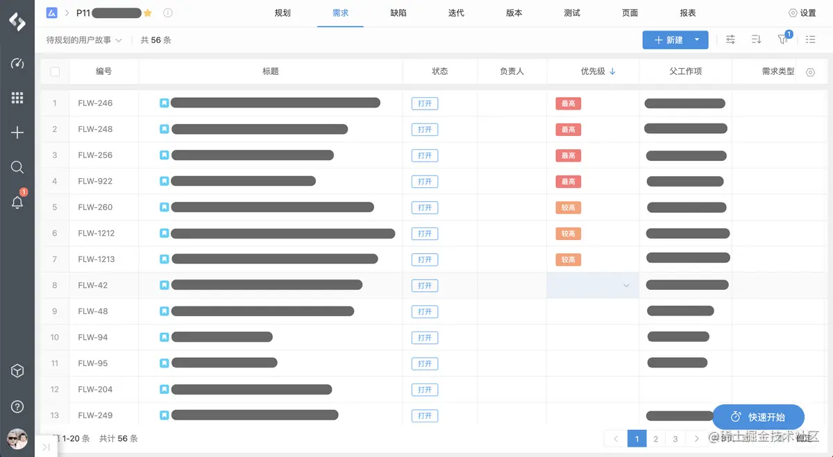 进入每一个敏捷团队的”待办工作事项“(PingCode Agile的需求列表)中,自组织团队就可以看到按优先级排序的各类需求。