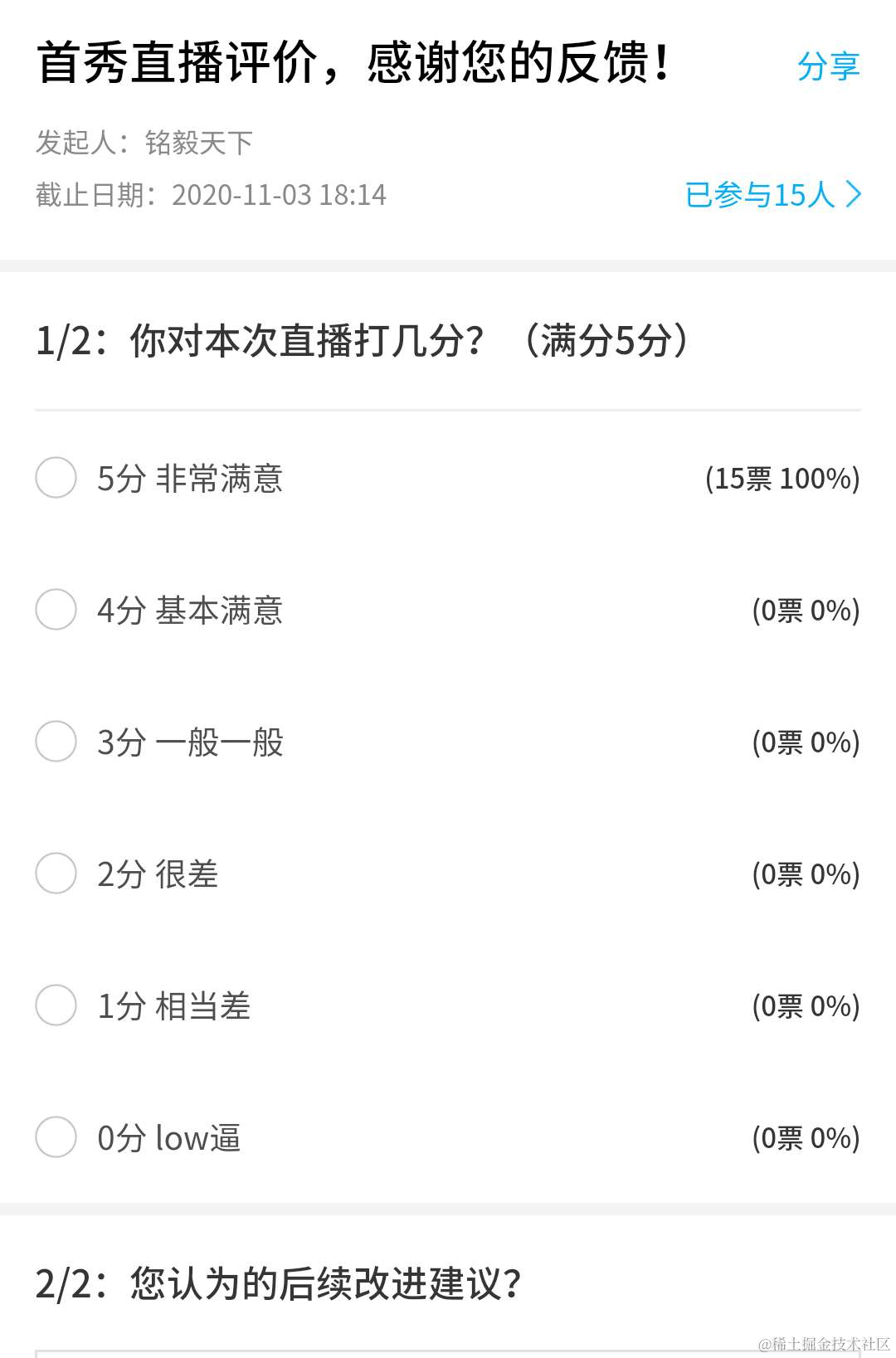 - 直播后,我在微信群里做了调研,竟然参与调研的童鞋全员打了满分5分。