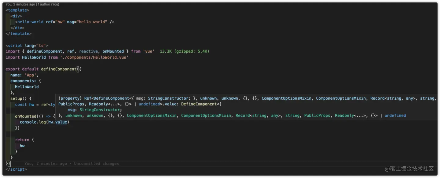 通过用法,我们可以大概猜到他们是干嘛用的。defineComponent用于声明组件,ref以及reactive用于声明响应式的数据。