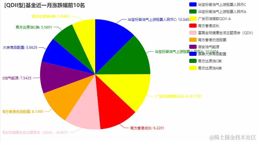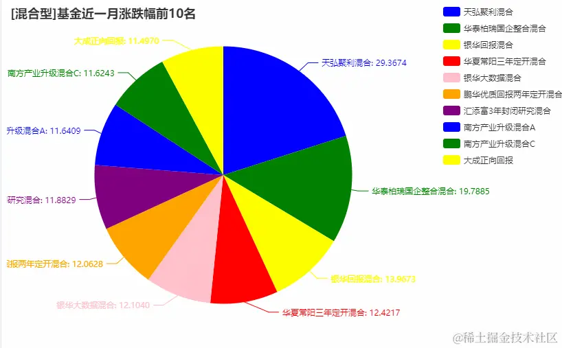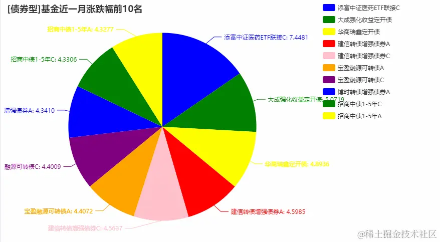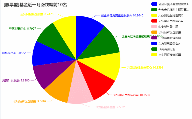 pie(name, value, str(key)+"基金涨跌幅", "["+str(key)+"]基金近一月涨跌幅前10名")