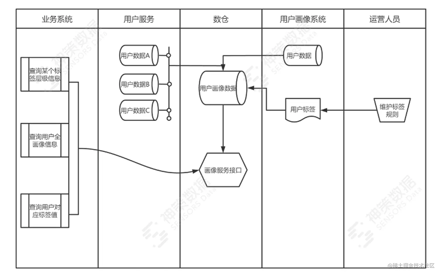 (1)用户标签生产。运营人员在神策用户画像系统通过自定义规则来创建和维护标签。
