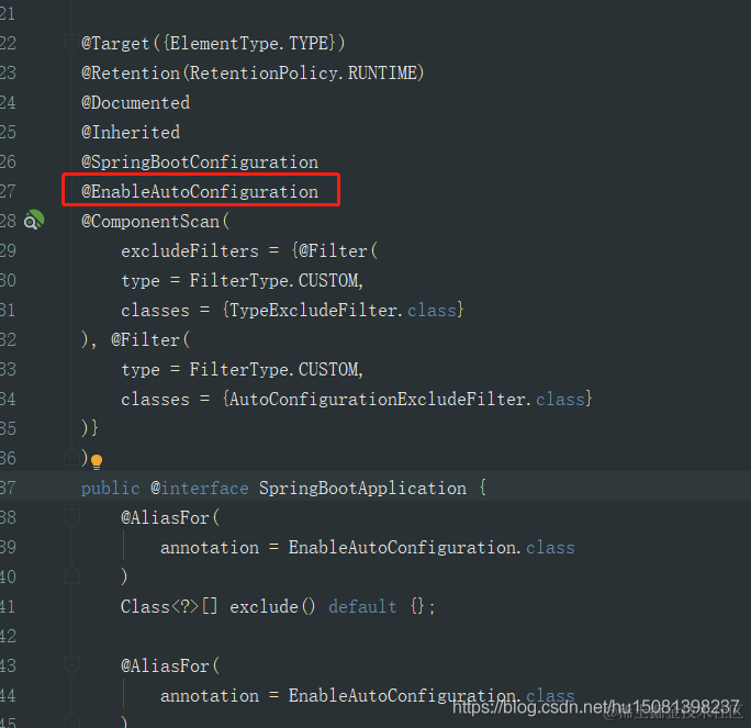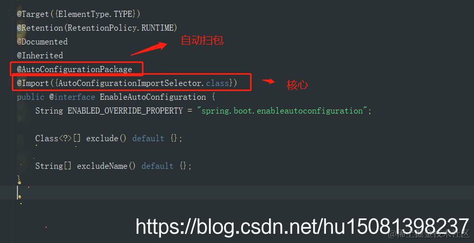 正餐开始 @EnableAutoConfiguration,跟踪源码点进去如下