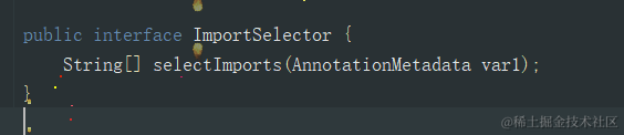 AutoConfigurationImportSelector这个类最终实现了ImportSelector,ImportSelector是一个接口,里面有一个抽象方法,返回的是一个String数组,在这个数组中可以指定需要装配到IOC容器的类,当在@Import中导入它的实现类侯,就会把该类中返回的Class名称都装载到IOC容器中